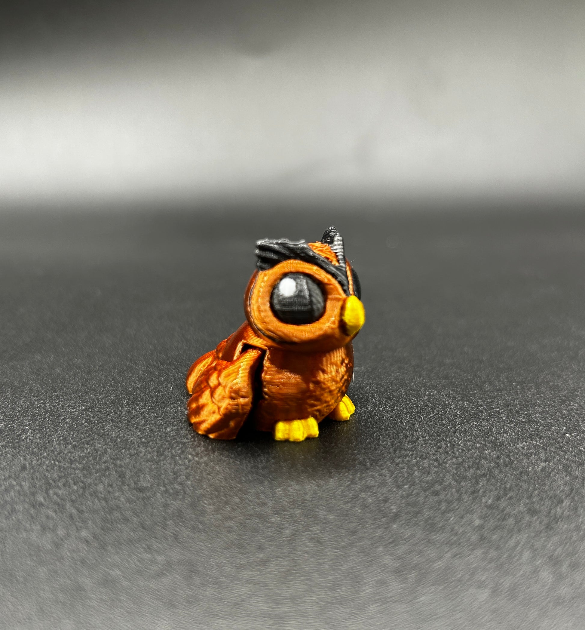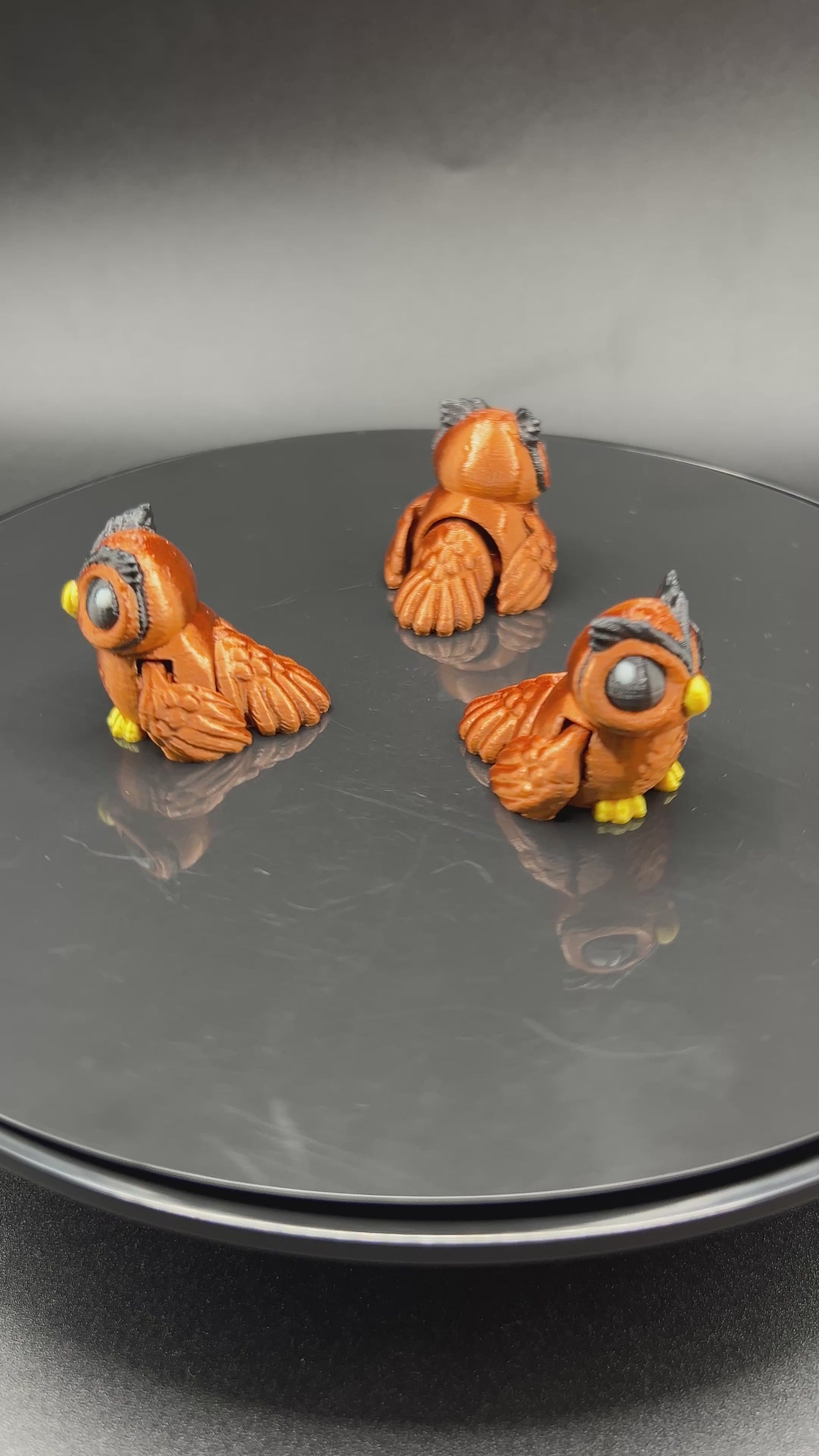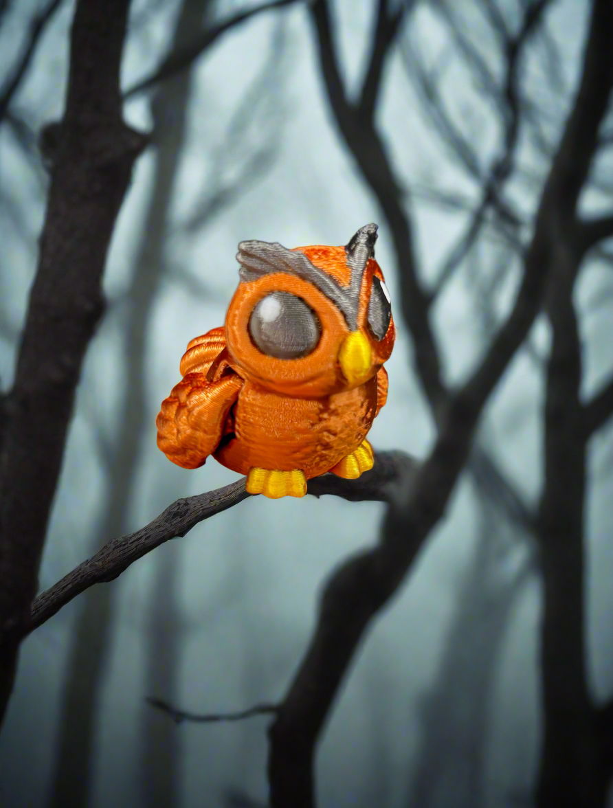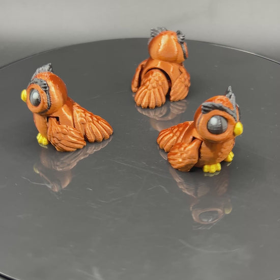 Straight from a moonlit forest and into your spooky setup comes this adorable Great Horned Owl hatchling, 3D printed in a shimmering bronze filament that catches the light just right. With wide eyes full of mystery and tiny talons ready to perch on your shelf, this little owl brings a whimsical, slightly eerie charm ~ perfect for Halloween or year-round woodland vibes.