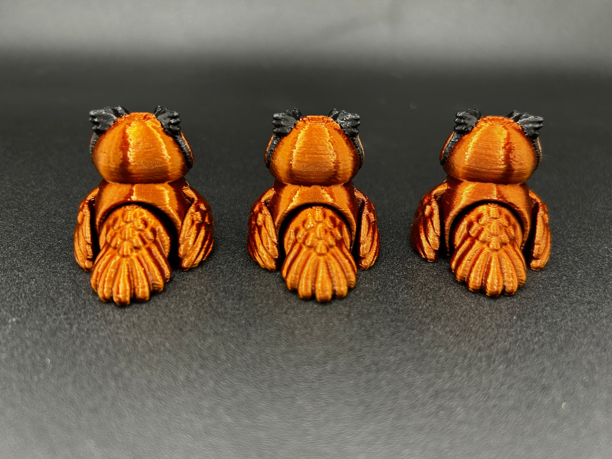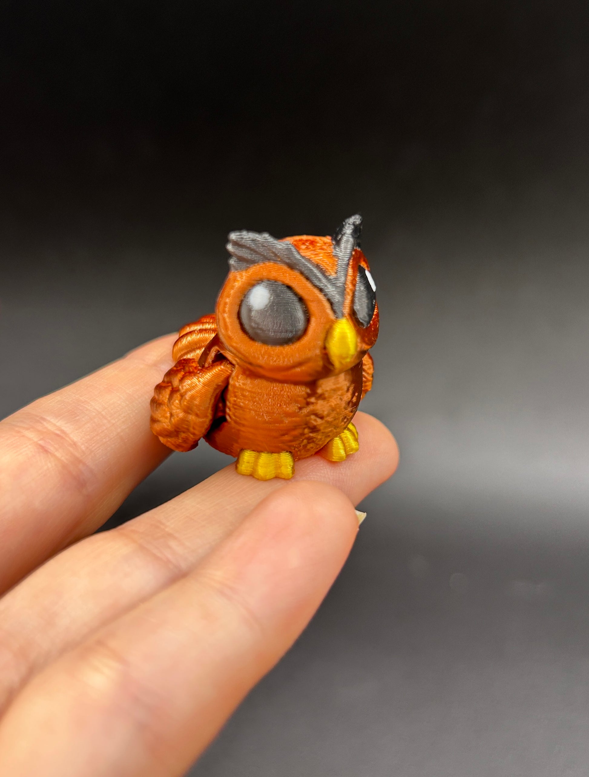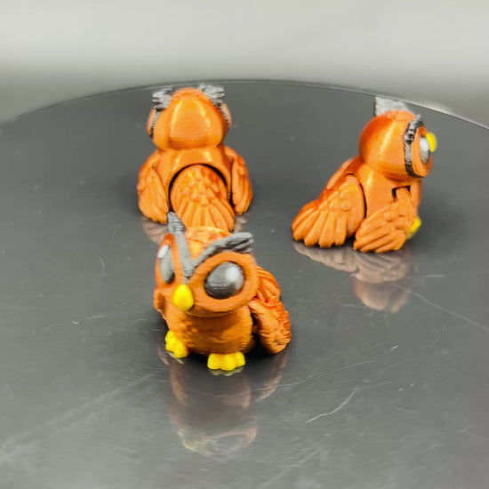 Straight from a moonlit forest and into your spooky setup comes this adorable Great Horned Owl hatchling, 3D printed in a shimmering bronze filament that catches the light just right. With wide eyes full of mystery and tiny talons ready to perch on your shelf, this little owl brings a whimsical, slightly eerie charm ~ perfect for Halloween or year-round woodland vibes.