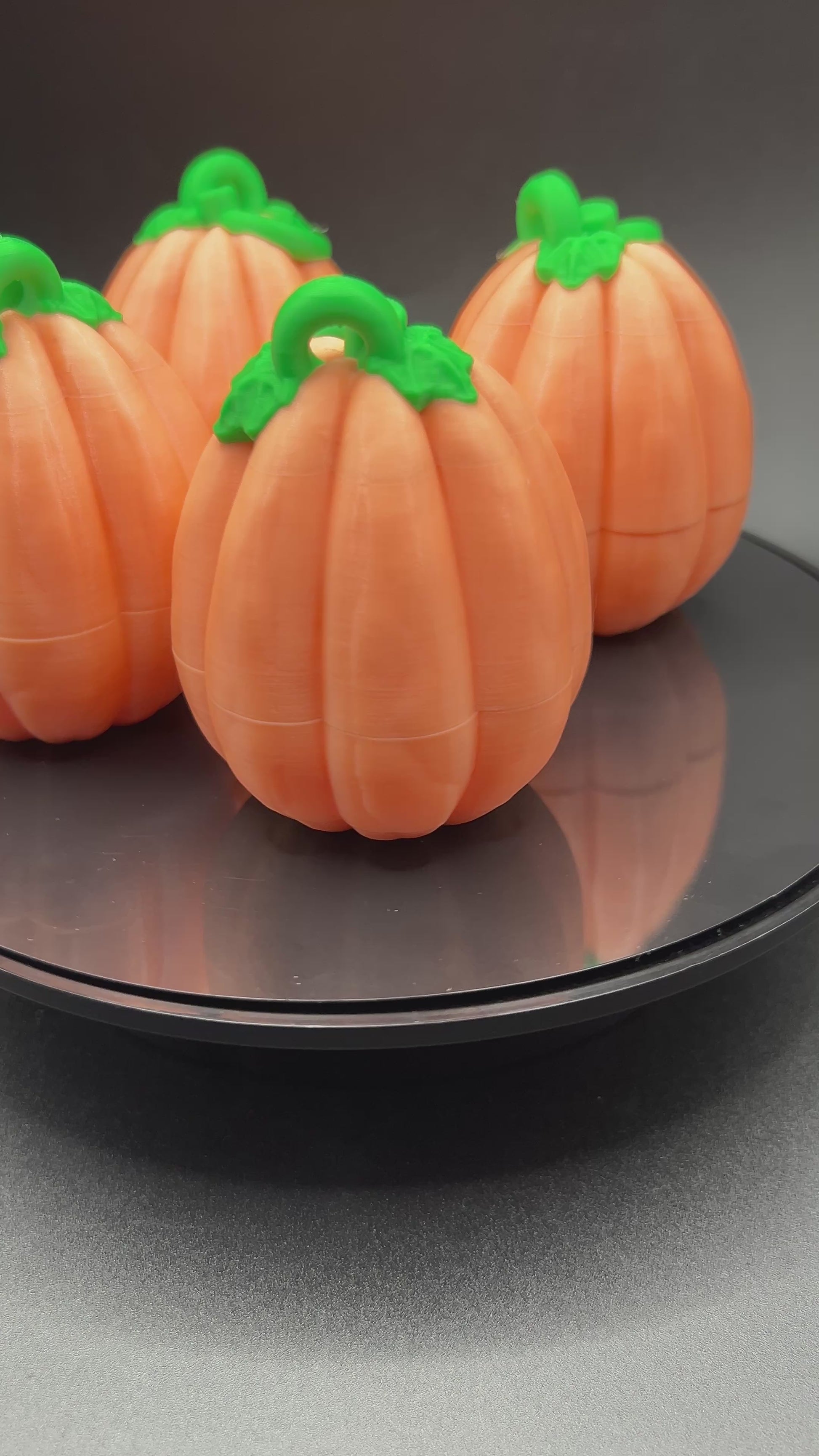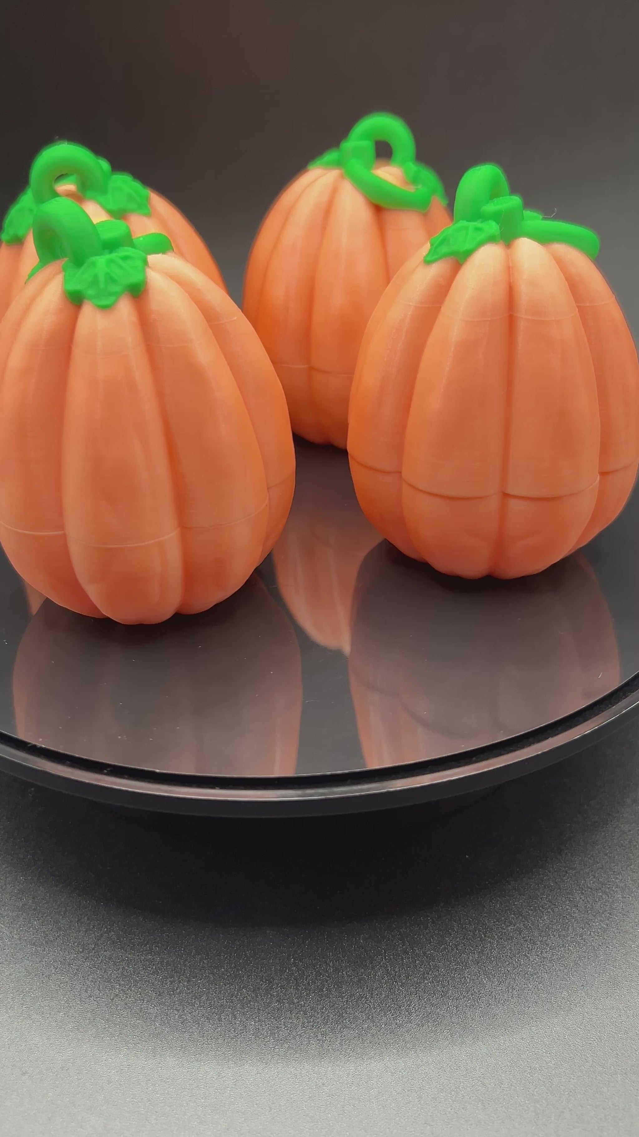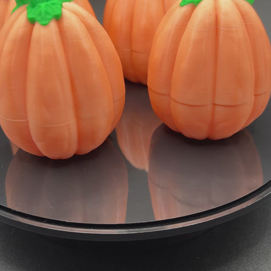 Light up your spooky season with these 3D-printed orange pumpkins, each topped with a vibrant green stem and a ghoulishly fun twist ~ they glow in the dark! But the real treat? These pumpkins open up to reveal space for tiny Halloween hatchlings, candy or other eerie surprises!