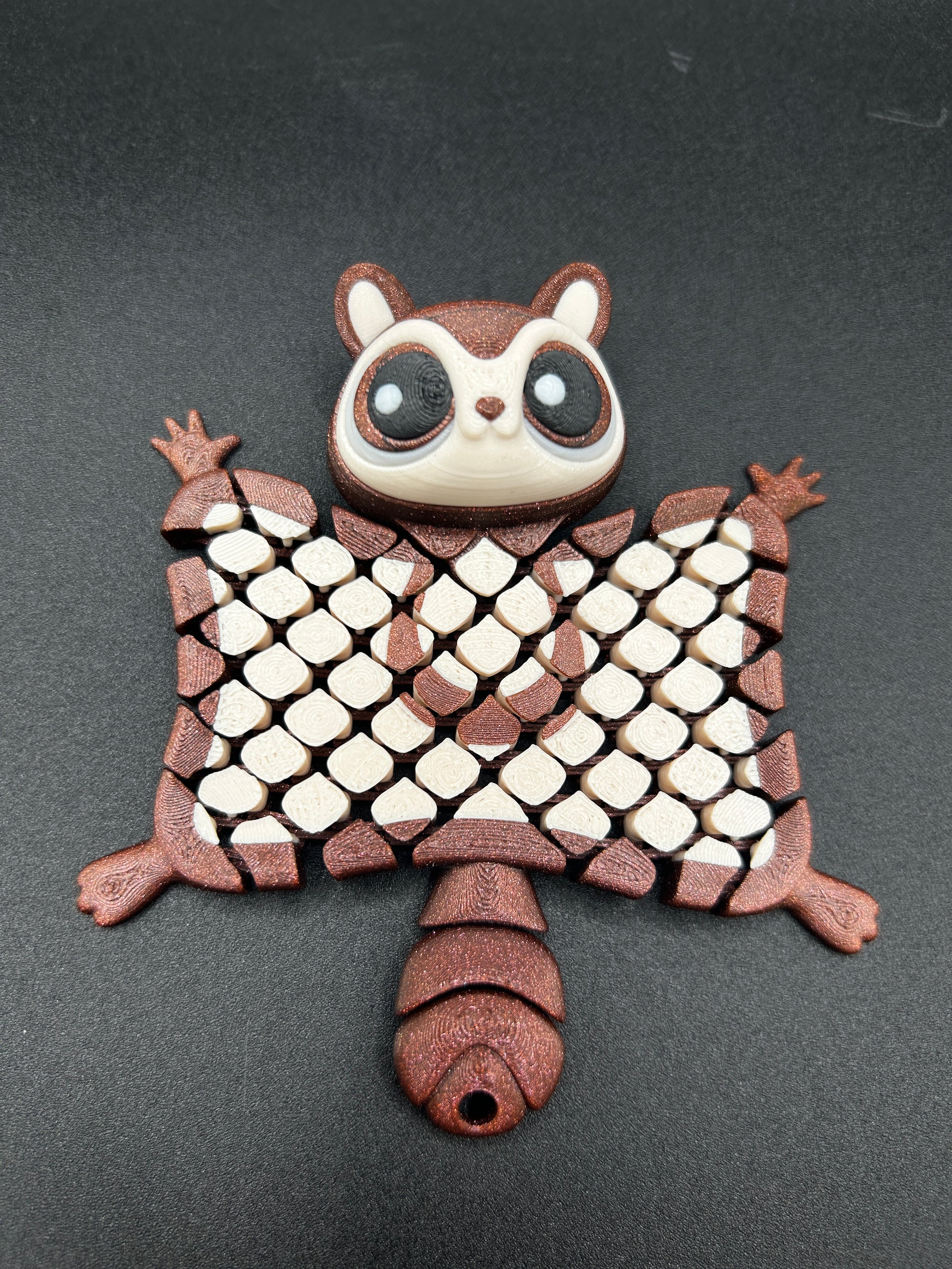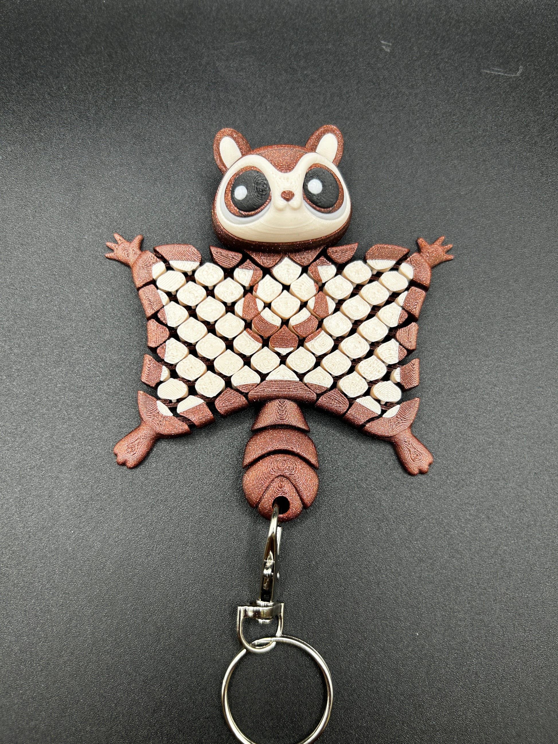 Meet Merle, your adventurous little companion in the form of a 3D printed flying squirrel keyring! Printed in a rich, shiny brown filament, Merle brings a touch of woodland whimsy and personality to your keys, backpack or zipper pull.